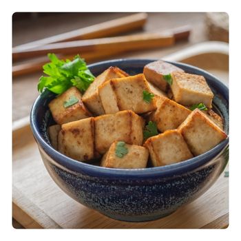 Rosola il tofu a cubetti in padella finché è ben dorato e mettilo da parte.